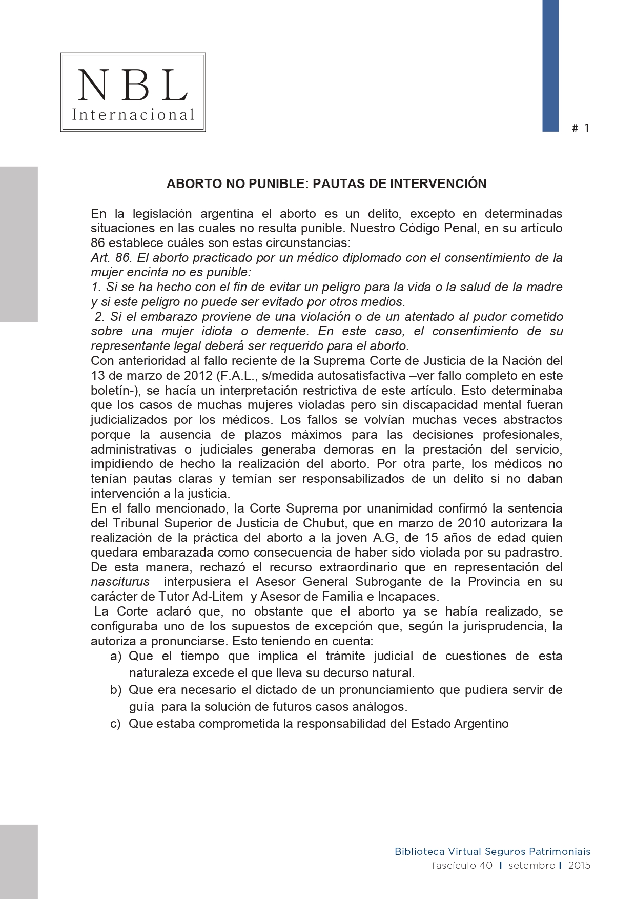En la legislación argentina el aborto es un delito, excepto en determinadas situaciones en las cuales no resulta punible.