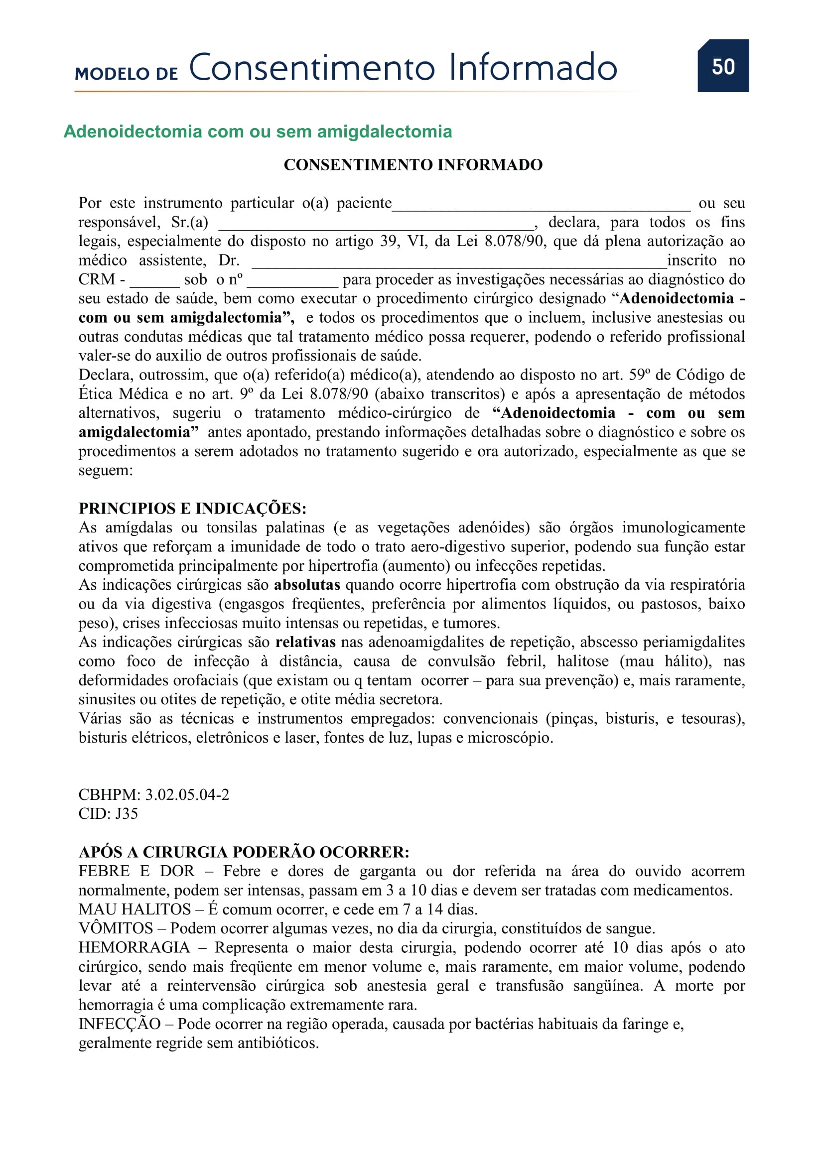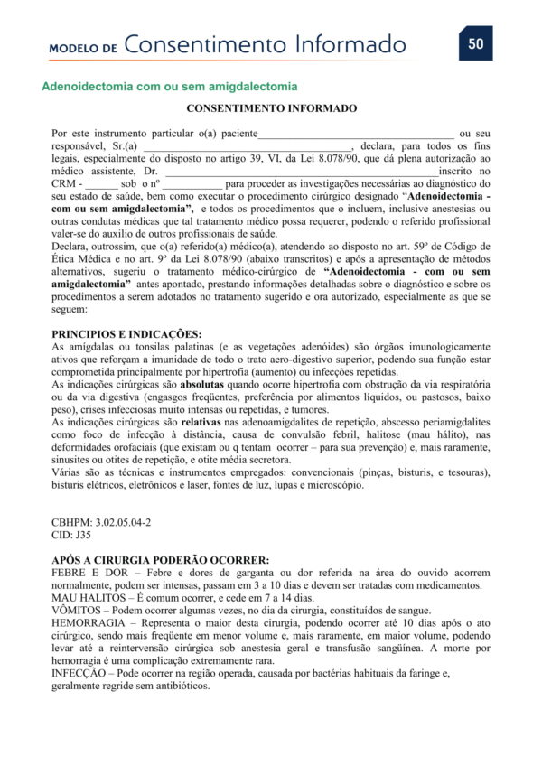 PDF de Consentimentos Informados Adenoidectomia com ou sem amigdalectomia