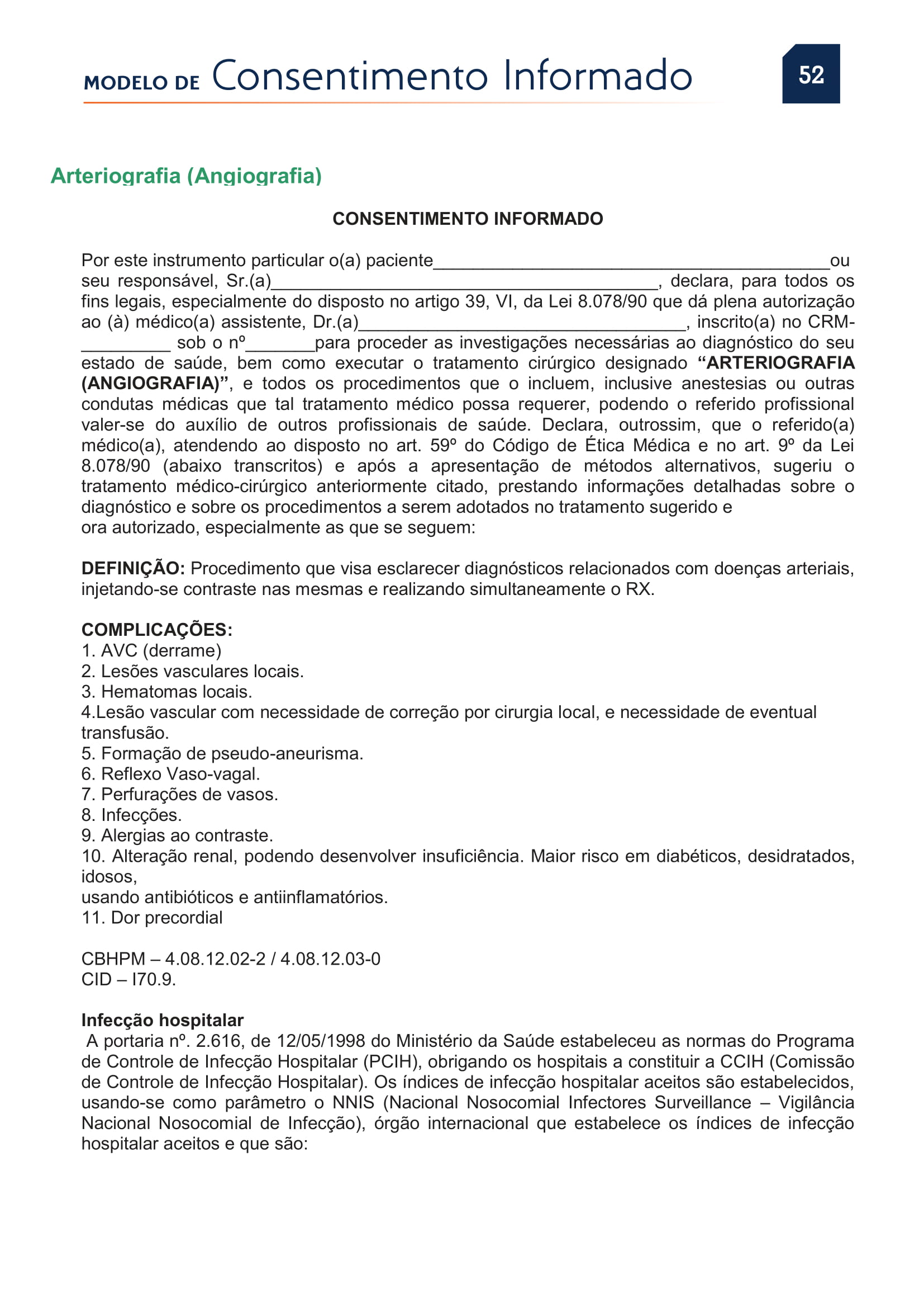 PDF de Consentimentos Informados Arteriografia Angiografia