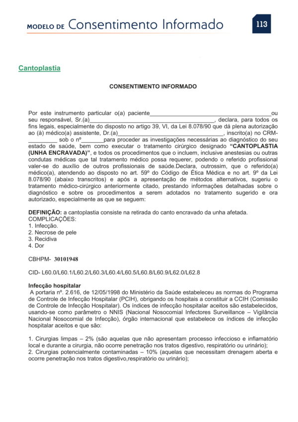 PDF de Consentimentos Informados Cantoplastia Unha Encravada