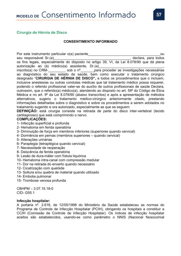PDF de Consentimentos Informados Cirúgia de Hérnia de Disco