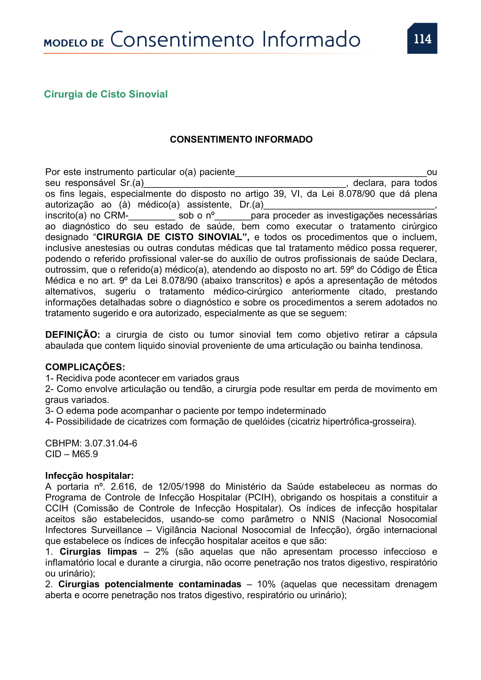 PDF de Consentimentos Informados Cirurgia Cisto Sinovial