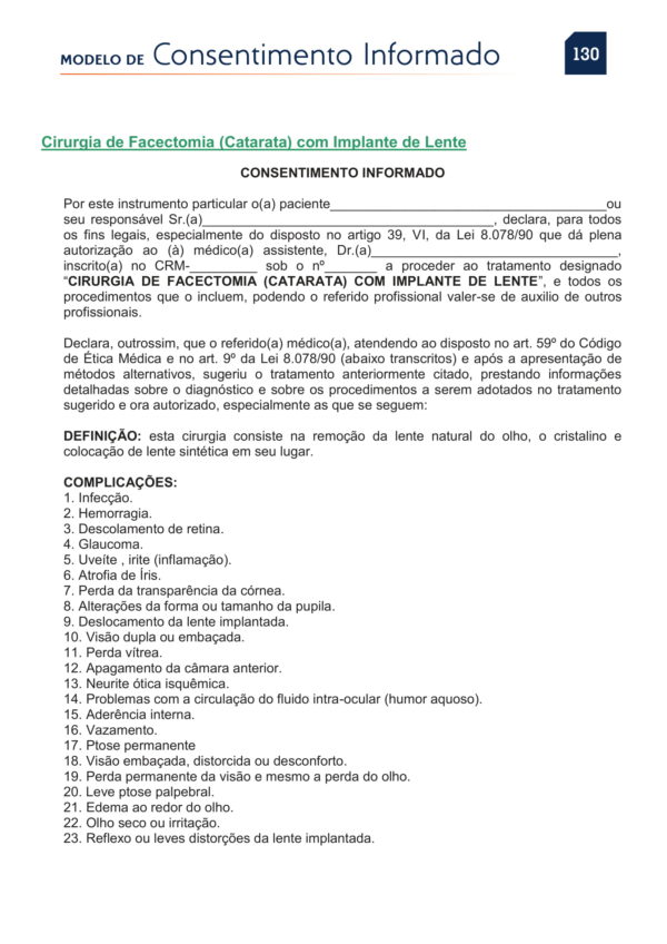 PDF de Consentimentos Informados Cirurgia de Facectomia Catarata com Implante de Lente