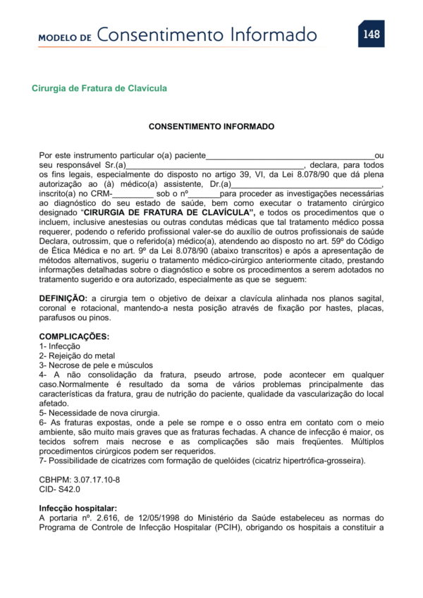 PDF de Consentimentos Informados Cirurgia de Fratura de Clavícula