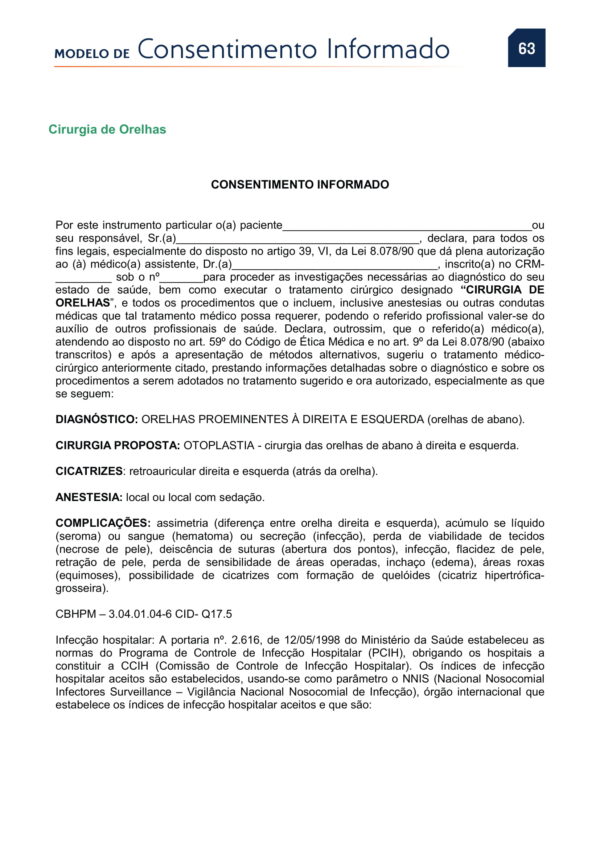 PDF de Consentimentos Informados Cirurgia de Orelhas