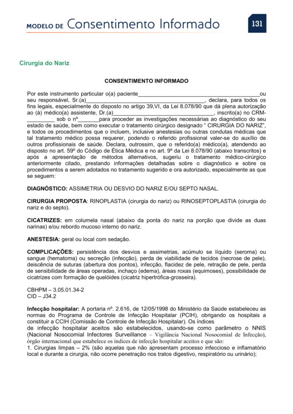 PDF de Consentimentos Informados Cirurgia do Nariz
