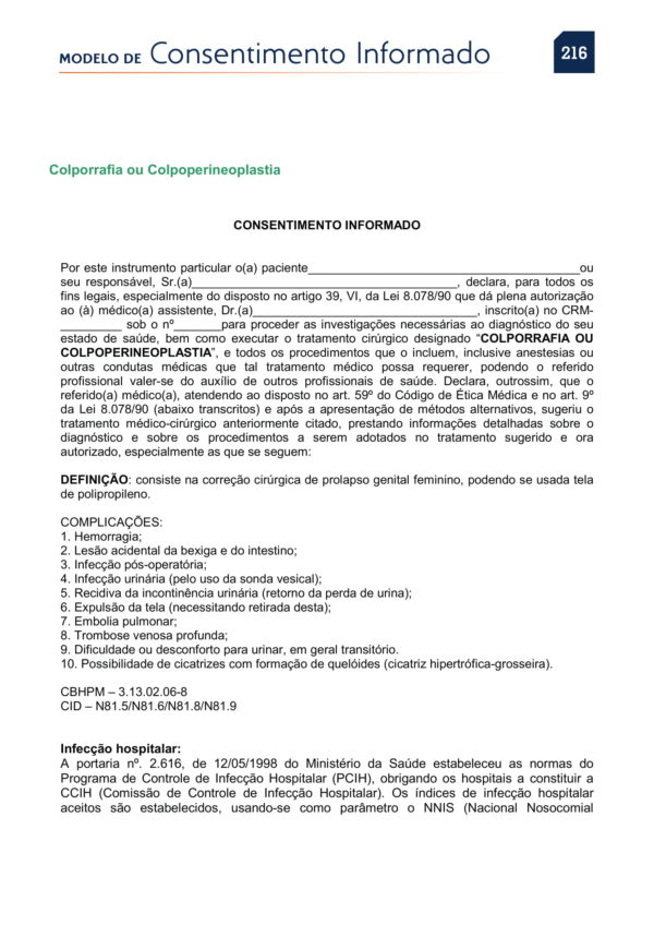 PDF de Consentimentos Informados Colporrafia ou Colpoperineoplastia