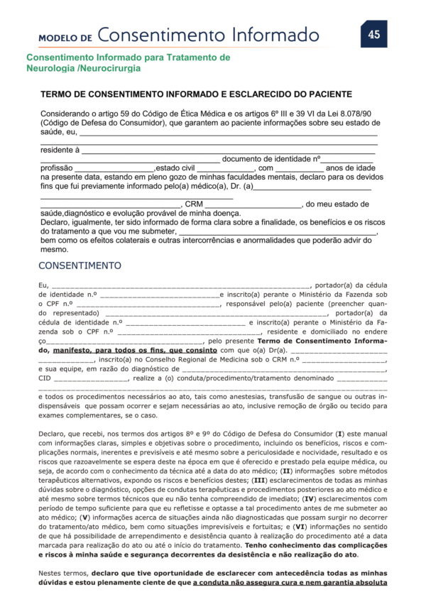 PDF de Consentimentos Informados Consentimento Informado Tratamento Neurologia Neurocirurgia
