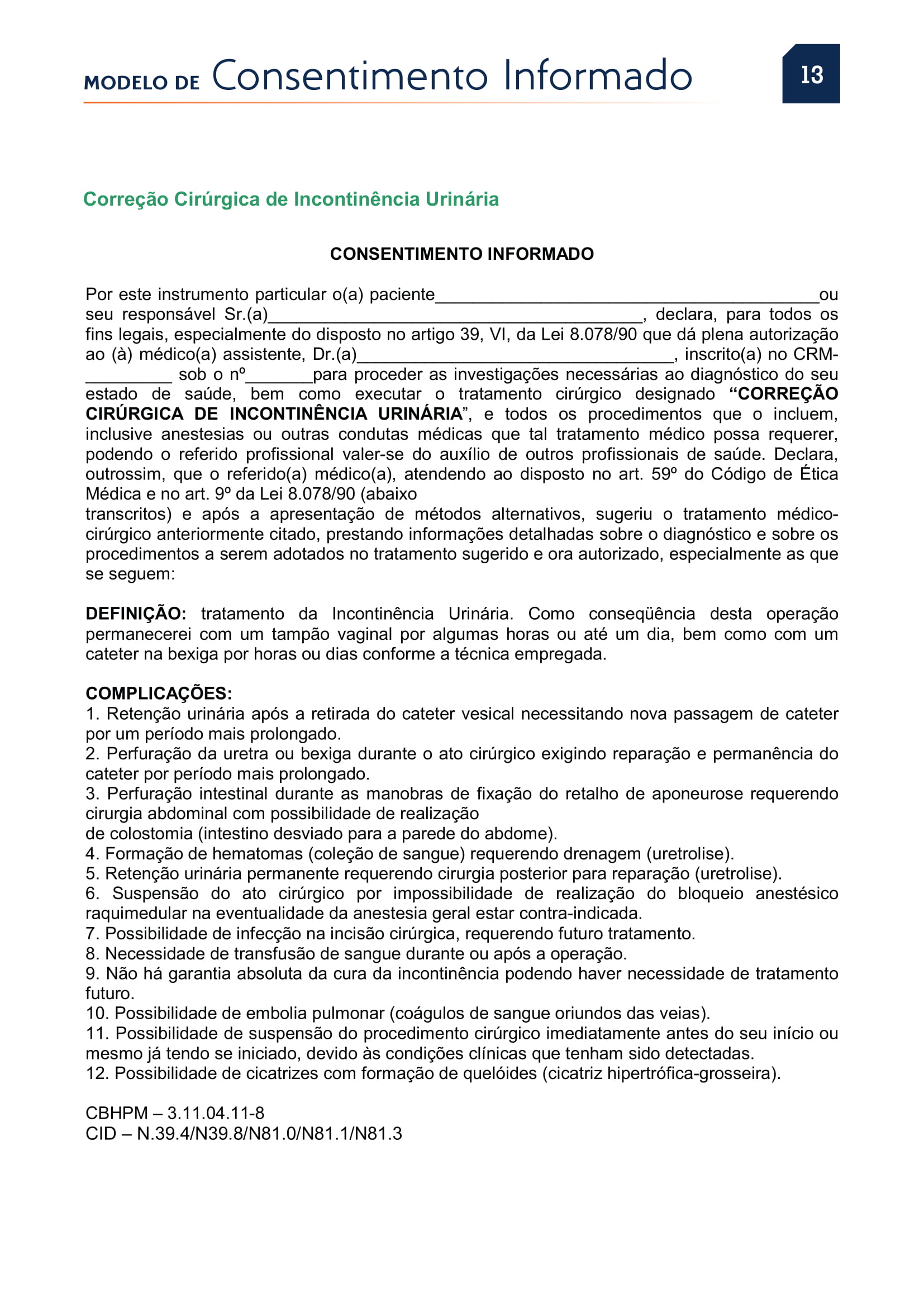 PDF de Consentimentos Informados sobre Correção Cirúrgica de Incontinência Urinaria