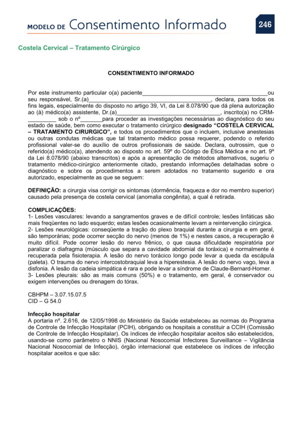 PDF de Consentimentos Informados Costela Cervical Tratamento Cirúrgico