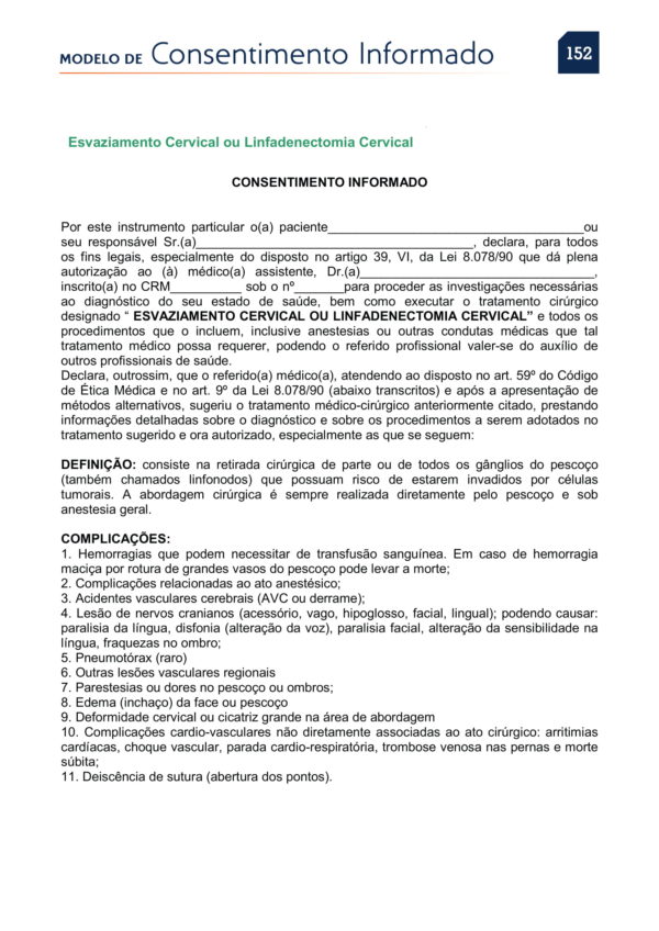PDF de Consentimentos Informados Esvaziamento Cervical ou Linfadenectomia Cervical