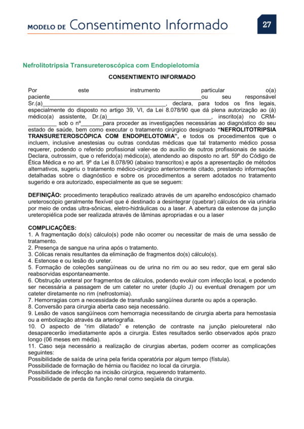PDF de Consentimentos Informados sobre Litotripsia Extracorpórea por Ondas de Choque LECO