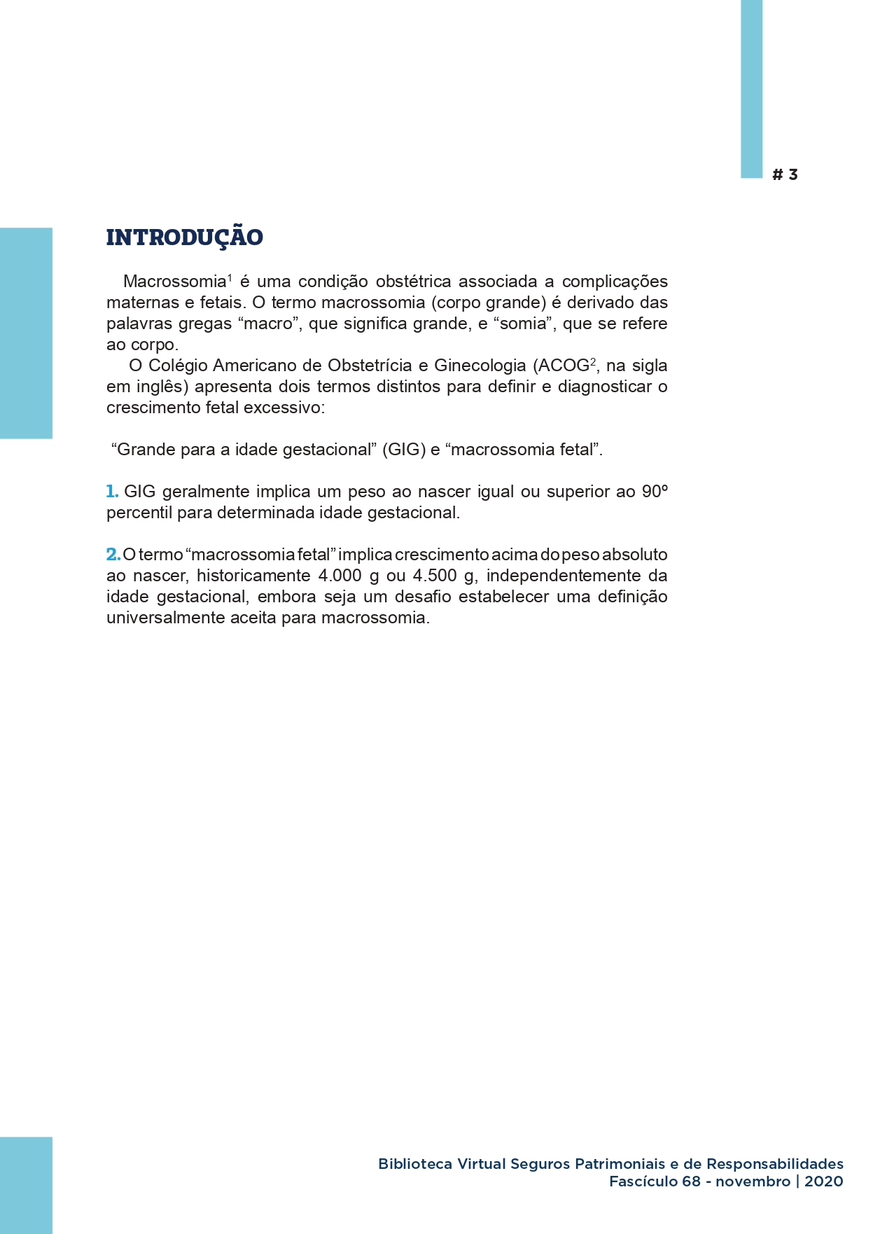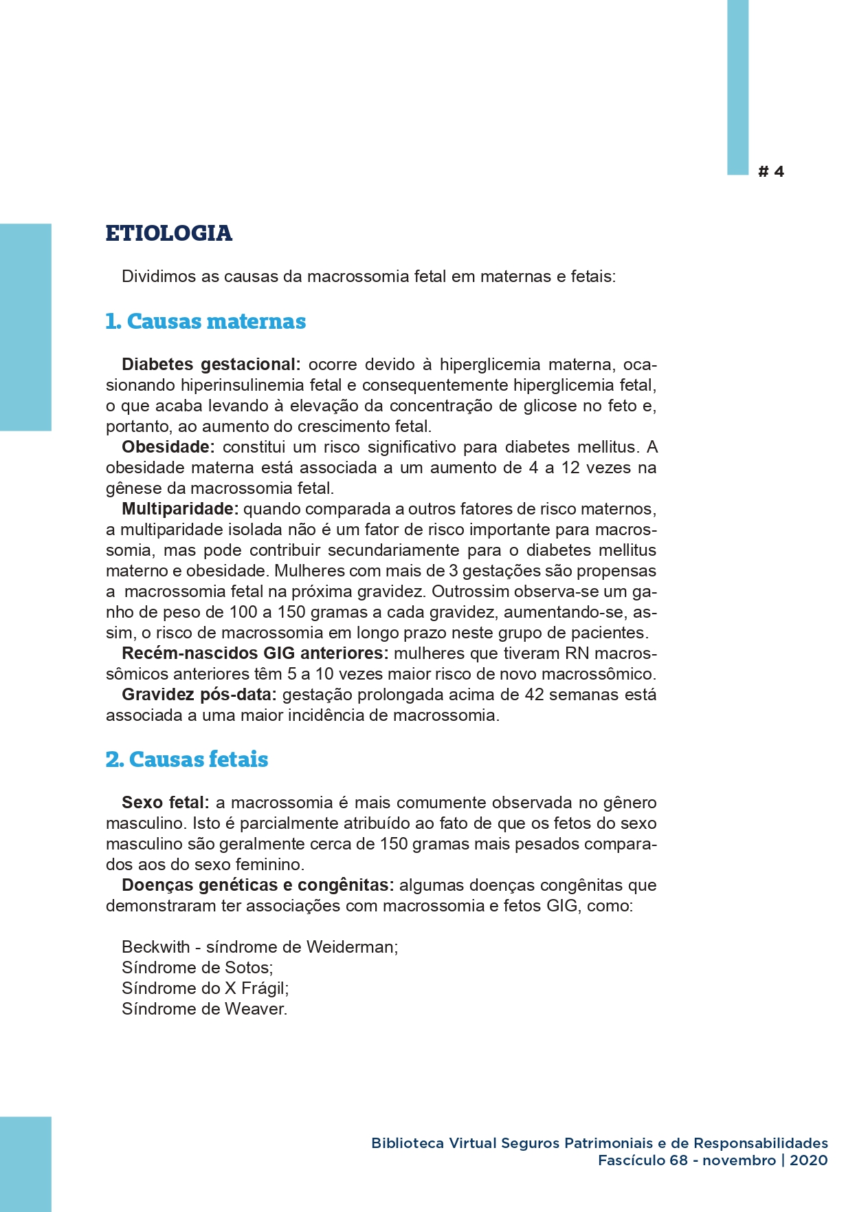 com maior acerto a estimativa do peso fetal ao nascimento, não existem métodos totalmente eficazes para a identificação de macrossomia previamente ao momento do parto. Assim, a aplicação de medidas preventivas, como o controle adequado do diabetes gestacional e peso materno no pré-natal, é considerada a atitude mais evidente de melhora no desfecho obstétrico.