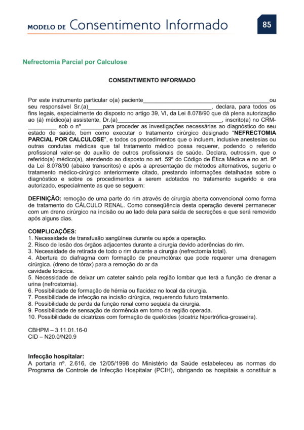 PDF de Consentimentos Informados Nefrectomia Parcial por Calculose