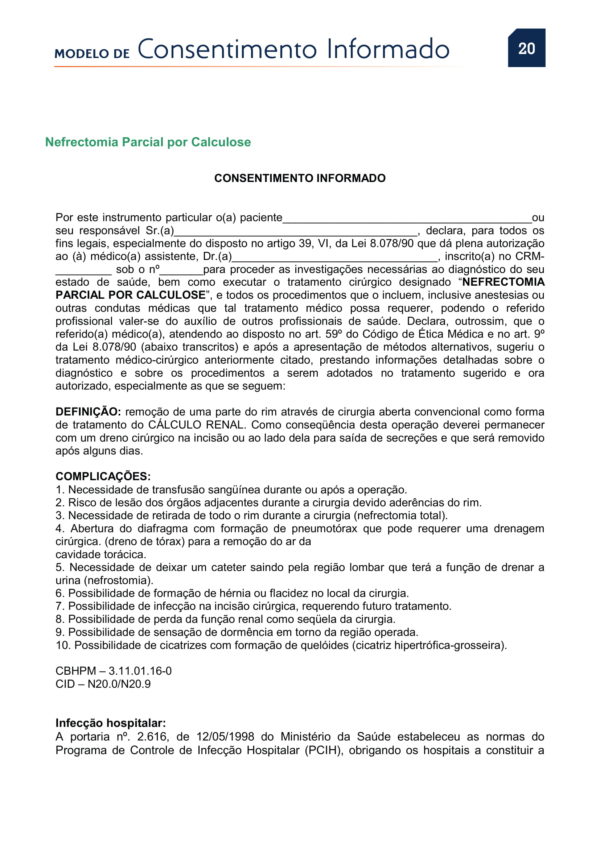 PDF de Consentimentos Informados sobre Nefrolitotomia Simples por Calculose Renal