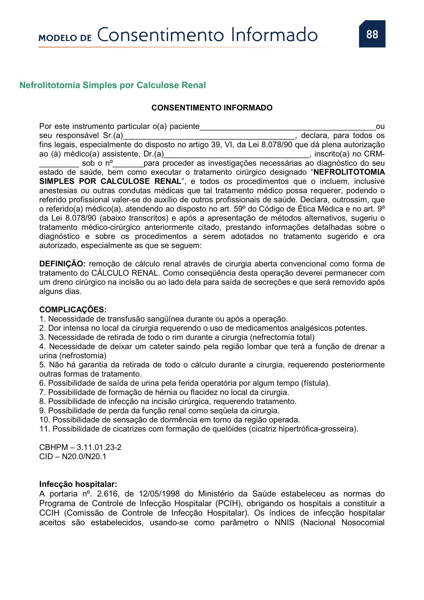 PDF de Consentimentos Informados Nefrolitotomia Simples por Calculose Renal