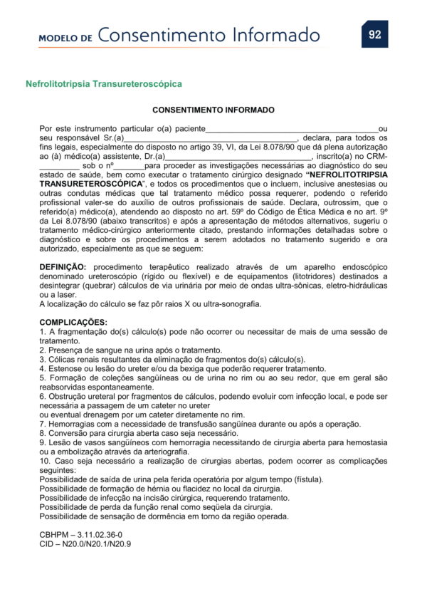 PDF de Consentimentos Informados Nefrolitotripsia Transureteroscopica