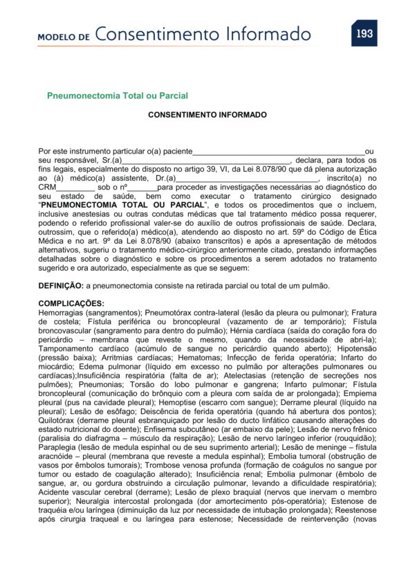 PDF de Consentimentos Informados Pneumonectomia Total ou Parcial