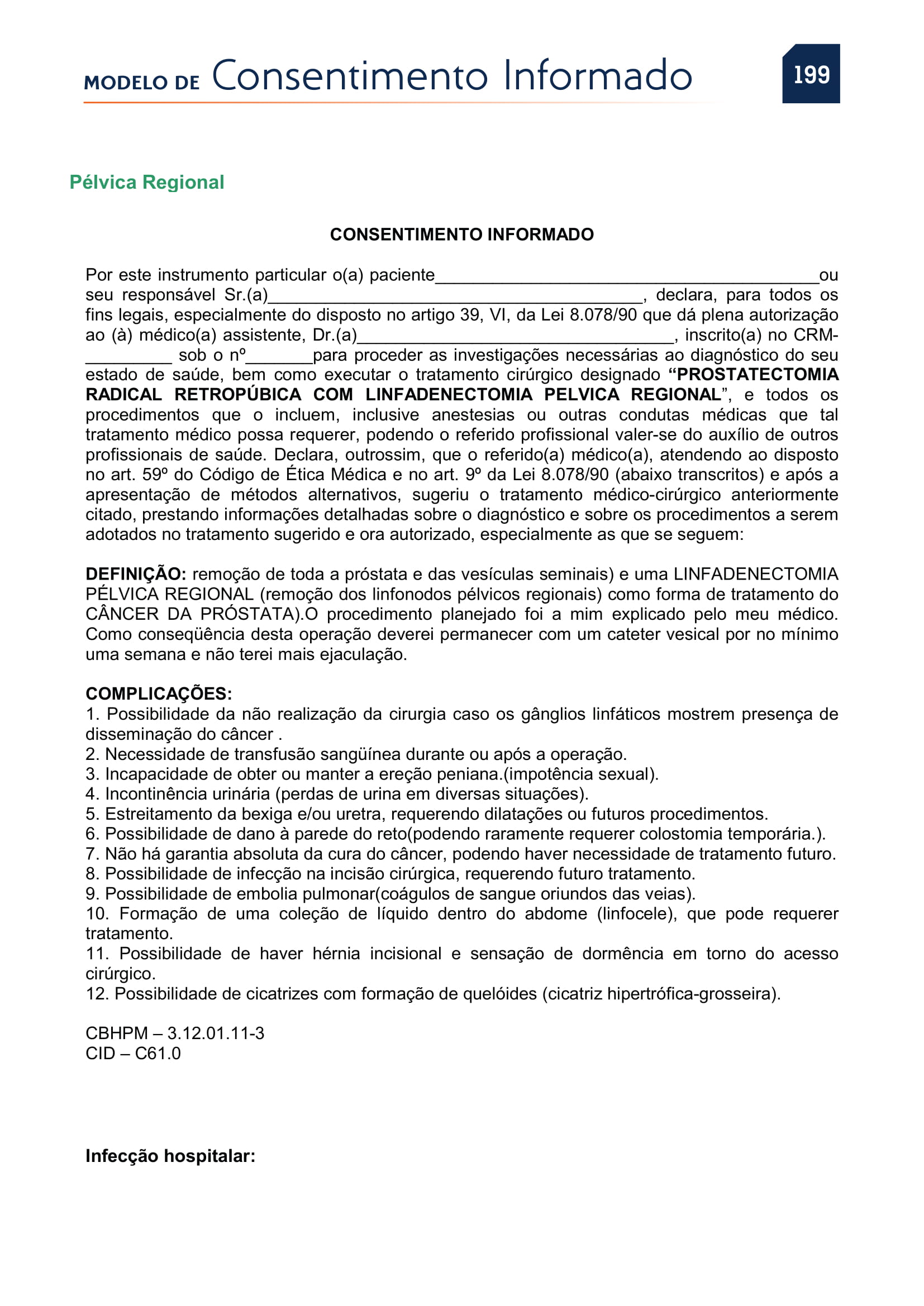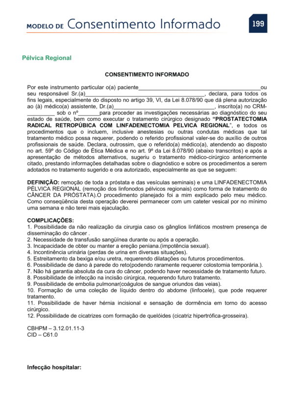 PDF de Consentimentos Informados Prostatectomia Radical Retropúbica com Linfadenectomia Pélvica Regional