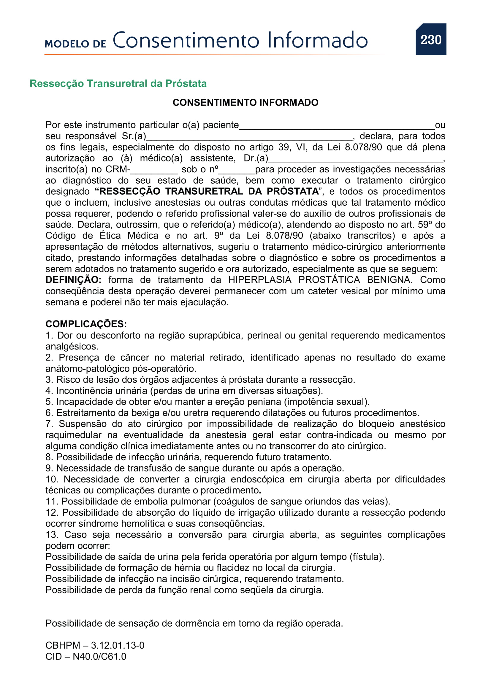PDF de Consentimentos Informados Resseccao Transuretral Próstata