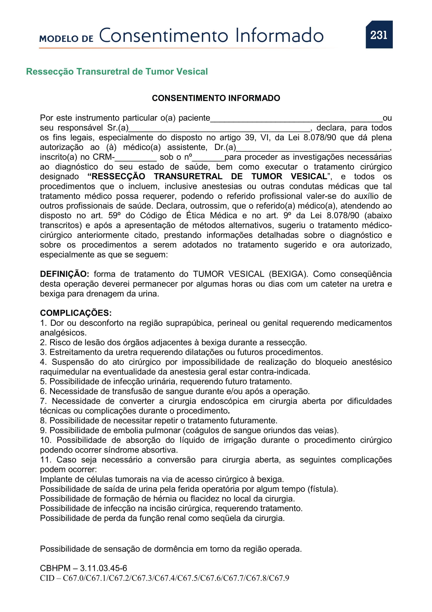 PDF de Consentimentos Informados Resseccao Transuretral Tumor Vesical