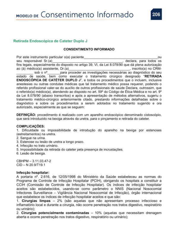 PDF de Consentimentos Informados Retirada Endoscópica de Cateter Duplo J