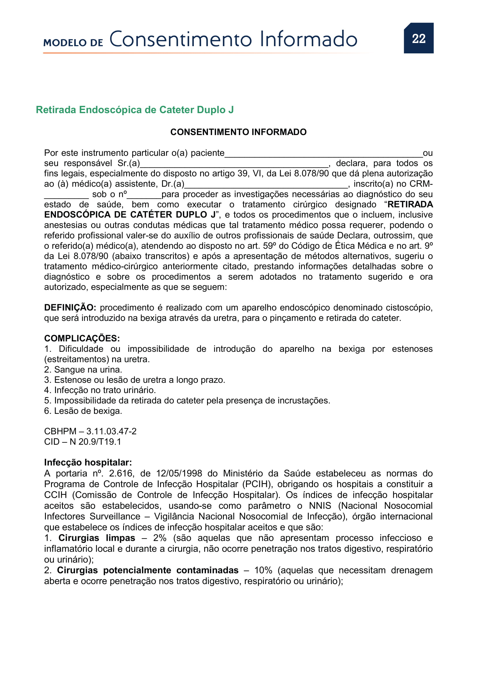 PDF de Consentimentos Informados sobre Retirada Endoscópica de Cateter Duplo