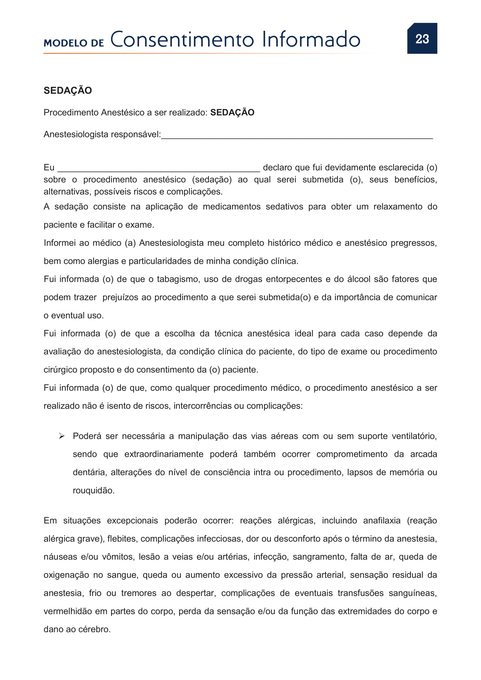 PDF de Consentimentos Informados sobre Sedação