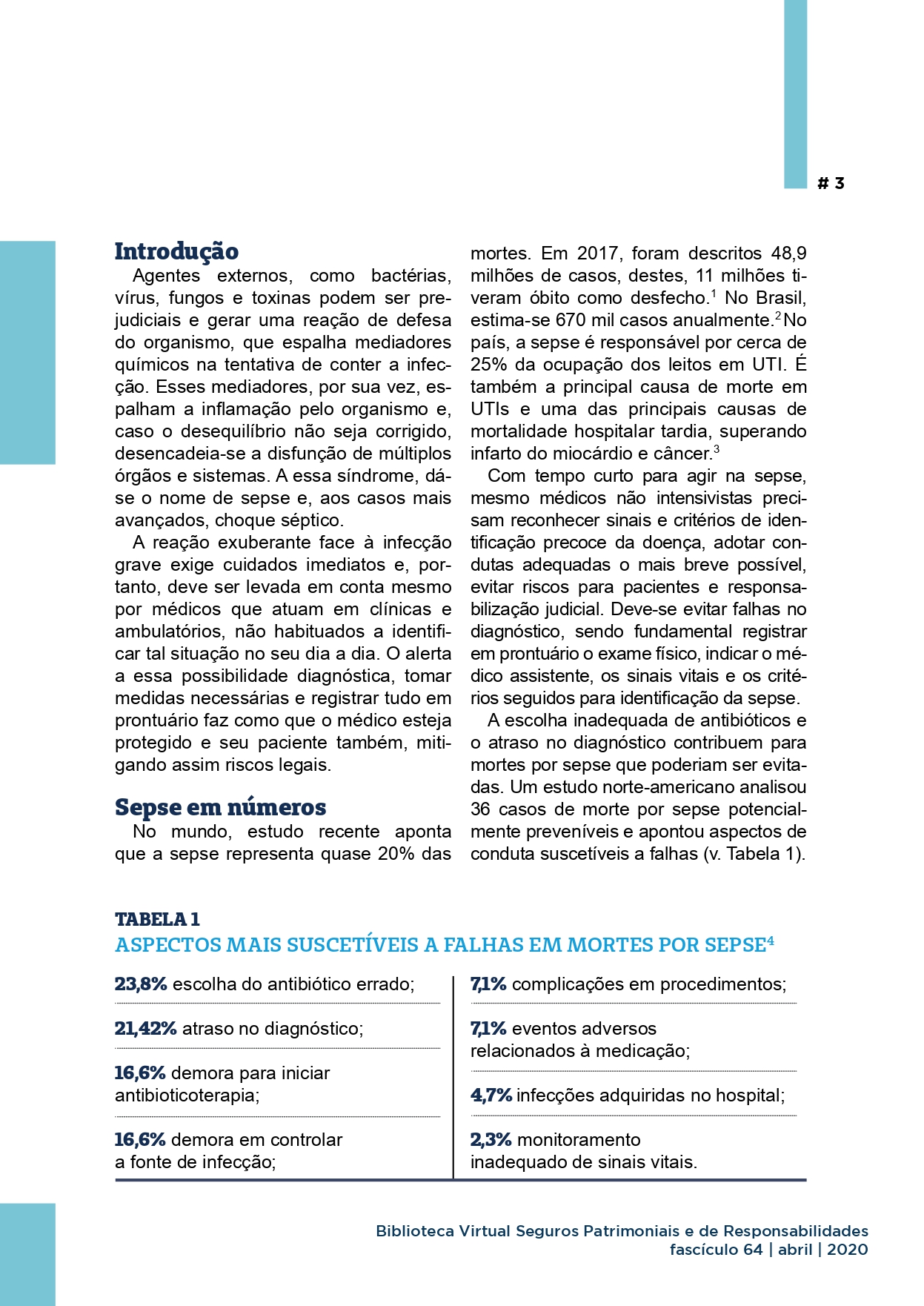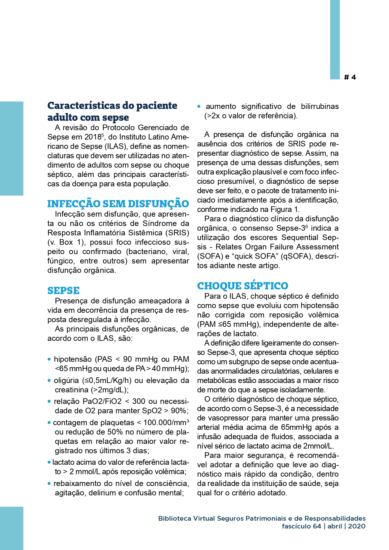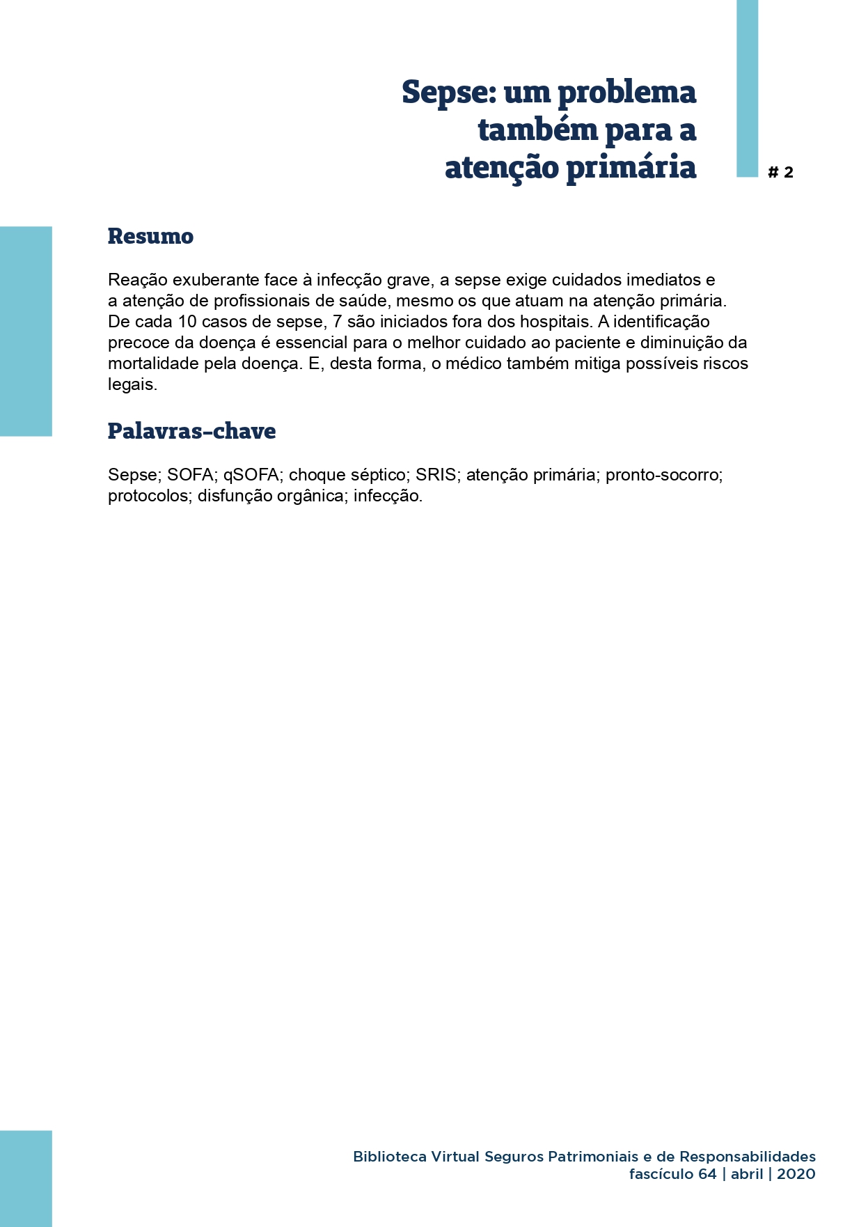 Reação exuberante face à infecção grave, a sepse exige cuidados imediatos e a atenção de profissionais de saúde, mesmo os que atuam na atenção primária. De cada 10 casos de sepse, 7 são iniciados fora dos hospitais. A identificação precoce da doença é essencial para o melhor cuidado ao paciente e diminuição da mortalidade pela doença. E, desta forma, o médico também mitiga possíveis riscos legais.