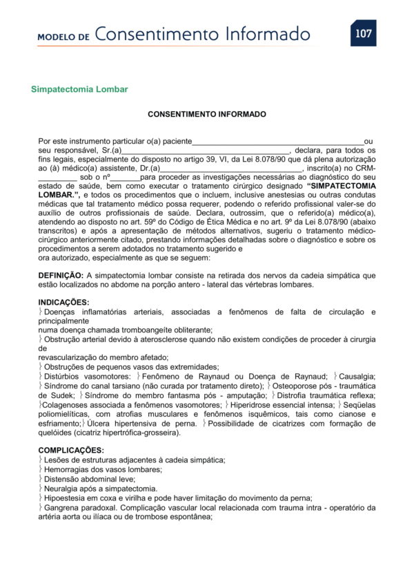 PDF de Consentimentos Informados Simpatectomia Lombar