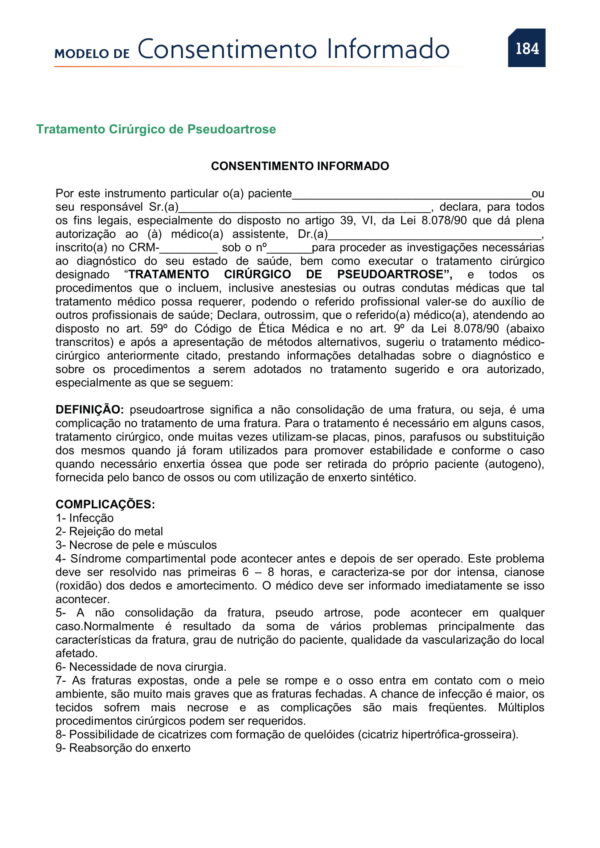PDF de Consentimentos Informados Tratamento Cirúrgico de Pseudoartrose
