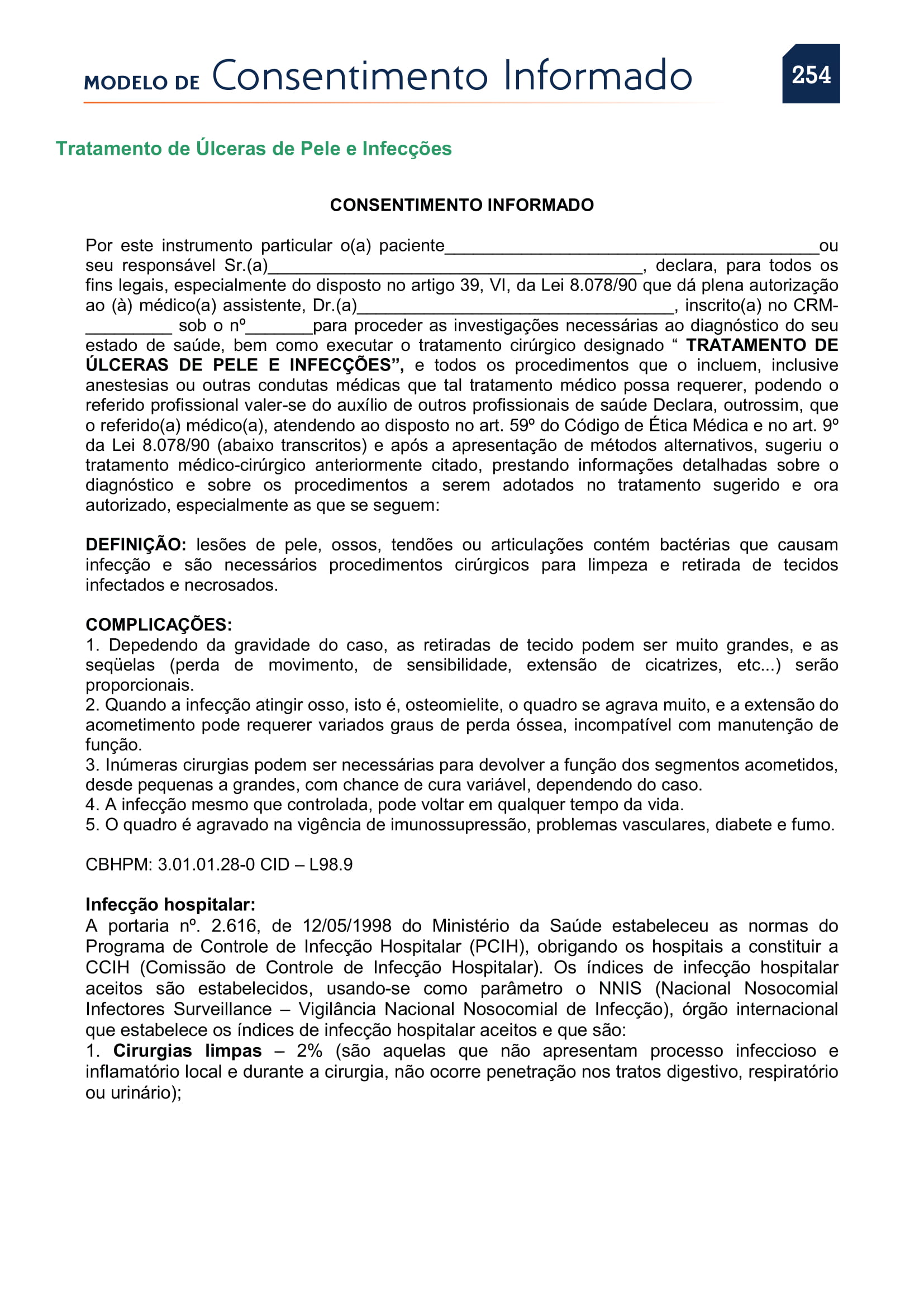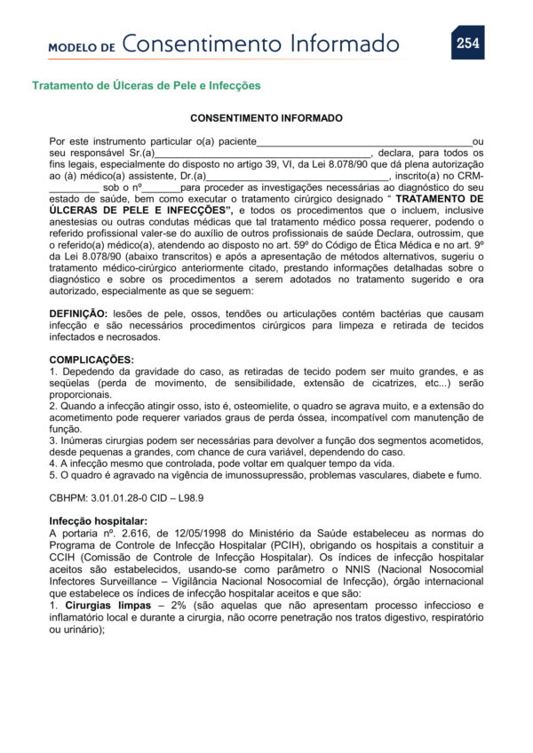 PDF de Consentimentos Informados sobre Tratamento de Ulceras de Pele e infecções