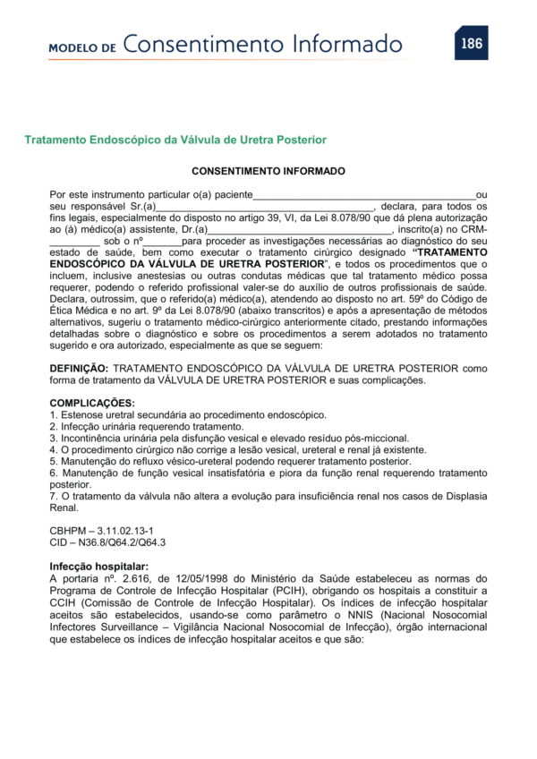 PDF de Consentimentos Informados Tratamento Endoscópico da Válvula de Uretra Posterior