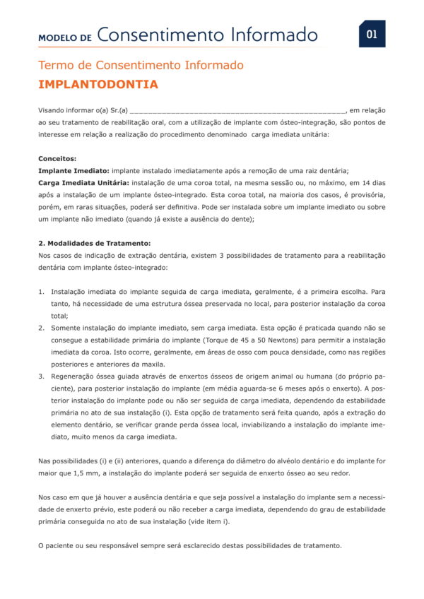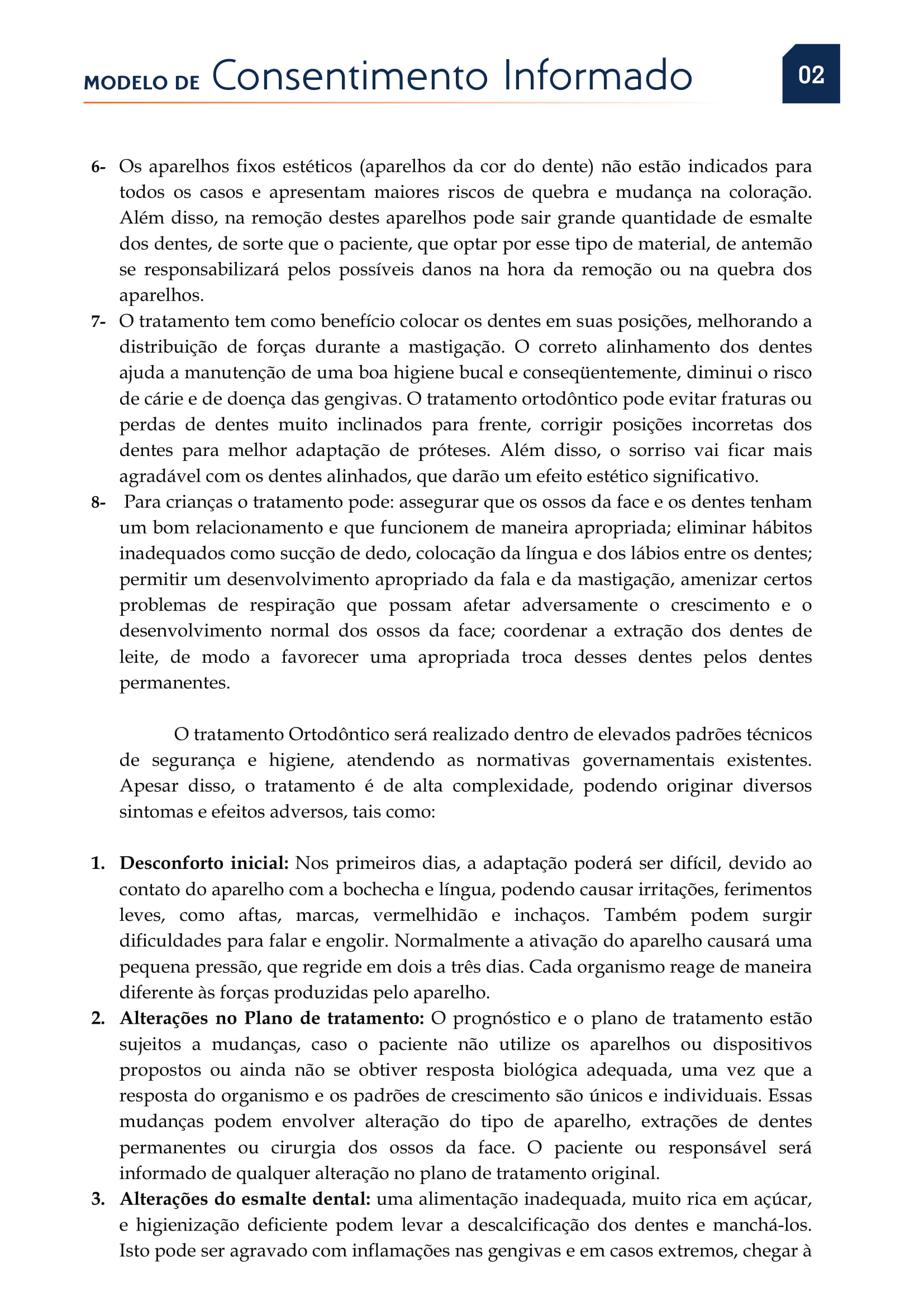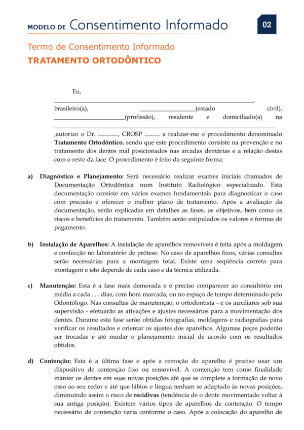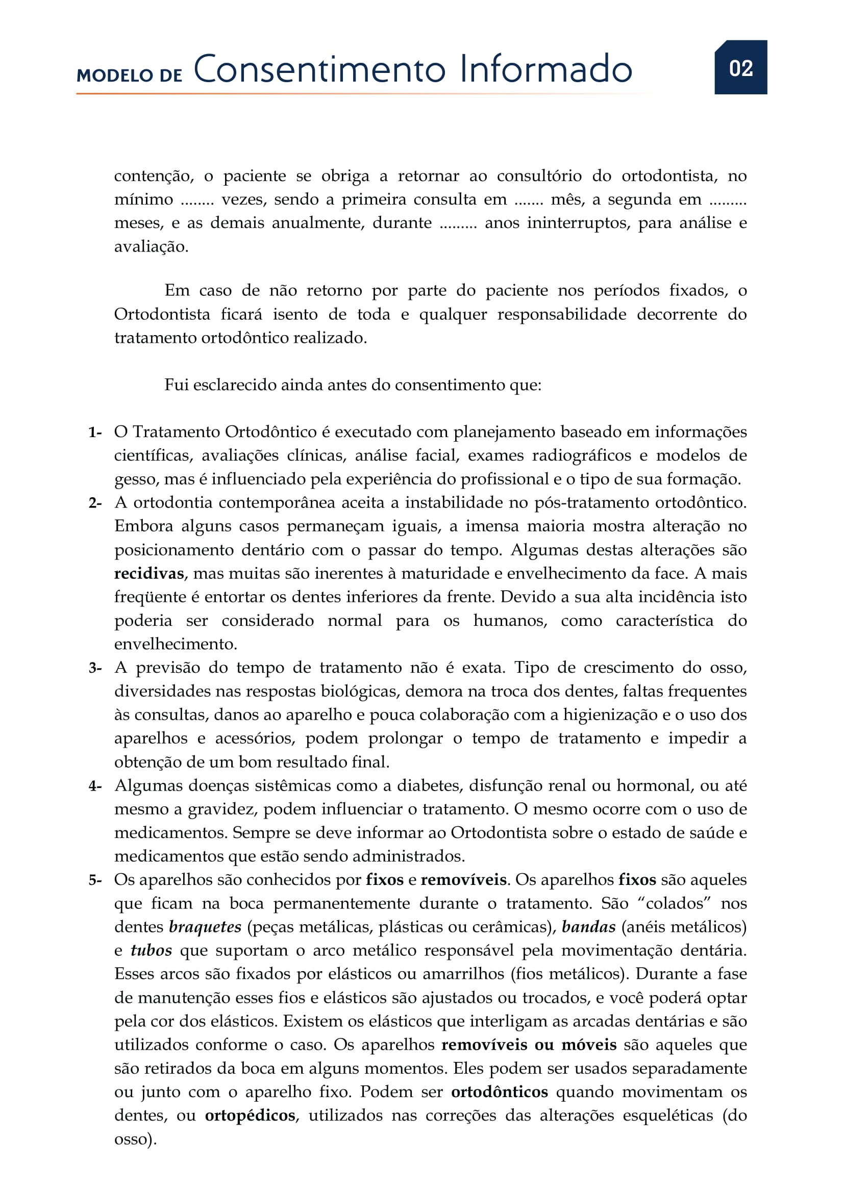 PDF de Consentimentos Informados Odontológicos sobre Tratamento Ortodôntico