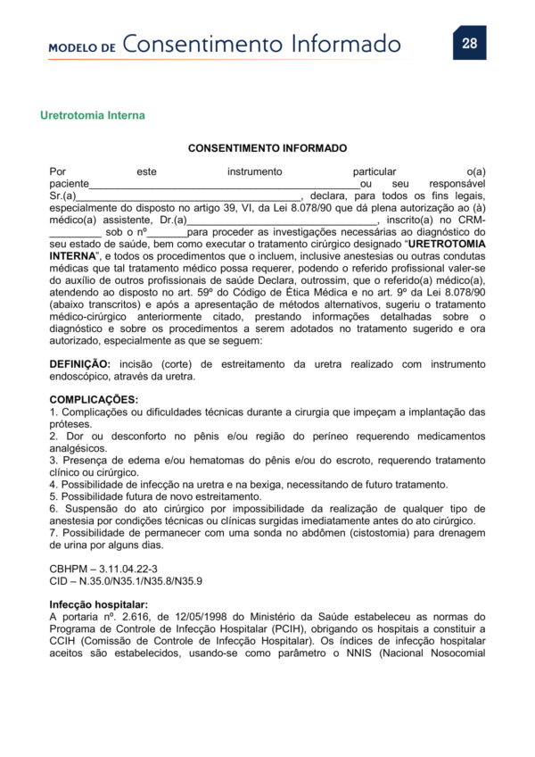 PDF de Consentimentos Informados sobre Uretrotomia Interna