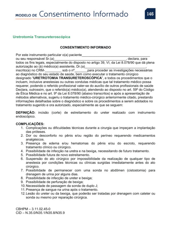 PDF de Consentimentos Informados Uretrotomia Transureteroscopica