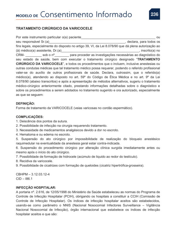 PDF de Consentimentos Informados Varicocele Tratamento Cirúrgico